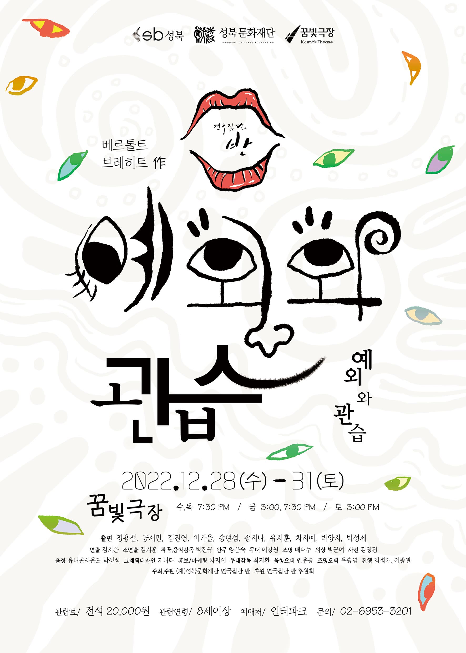 - 티켓요금 : 전석 20,000원/ 성북구민 1인 2매 20% 할인/ 예술인패스 본인만 50% 할인/ 문화패스(청소년, 대학생) 본인만 50% 할인/ 복지할인: 장애인1~3급 1인 2매 50% 할인, 장애인4~6급 본인만 50% 할인, 기초수급 및 차상위 본인만 50% 할인, 65세 이상 본인만 50% 할인